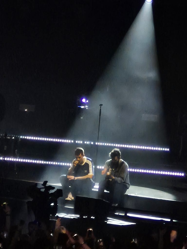 From the opening note, it was clear the night would trace the band’s history. Opening with Things We Lost in the Fire, the band, who were now performing as a seven-piece, immediately highlighted just how much they’ve grown since their debut album Bad Blood dominated the charts. The arena was lifted as Shut Off the Lights injected an assuring burst of life, with vocalist Dan Smith pacing all corners of the stage with a cool confidence. Their wealth of anthems quickly became apparent, as Good Grief and Quarter Past Midnight seamlessly followed. The crowd were in full voice, the atmosphere was at an all-time high, and the band were revelling in every moment.