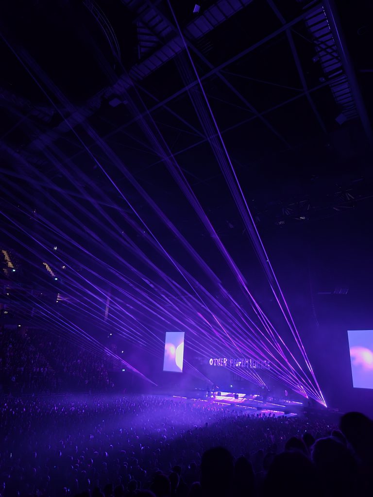 The sheer range of genres on display was remarkable; one moment you were wiping away tears, the next you were belting out a fan favourite, and moments later you’d find yourself in the middle of a full-on rave. The Other People’s Heartache mashup did just that, offering a refreshing detour in pace as the O2 transformed into a club. A medley of tracks like No Angels, Weapon and Dreams, paired with relentless lasers, sent London into a frenzy; a stark contrast to the mood just minutes earlier. The euphoria was undeniable as Smith and the band stepped behind a DJ setup to construct the spectacle. As it reached its peak, the shimmering opening to Of the Night ignited a huge cheer. It wasn’t long before another wave of confetti showered the arena, which had fully erupted into one giant celebration.