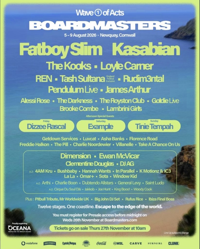 Pre-sale tickets will go live on Thursday 27th November at 10am: https://boardmasters.com/book-tickets/