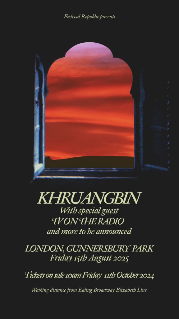Khruangbin have today announced their biggest UK headline performance to date with a huge open-air show taking place at London’sGunnersbury Park on Friday 15 August 2025. The Texas three-piece will also be joined by special guest TV On The Radio, who have recently announced a highly anticipated return to live shows.