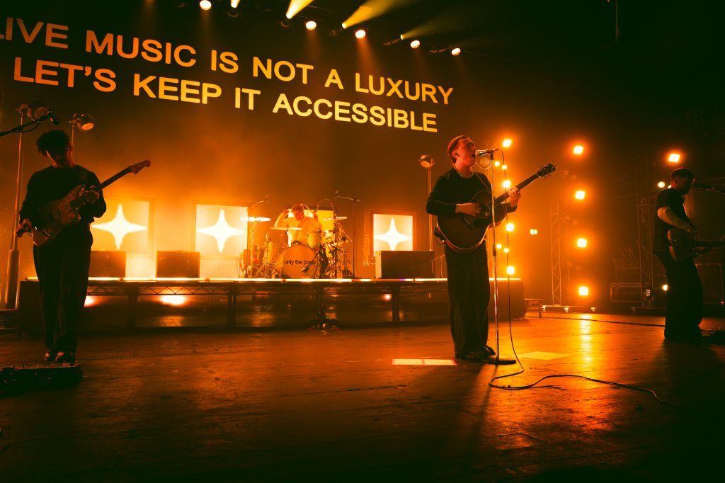 Emblazoned across the back of the O2 Brixton Academy stage, this message landed with the force of a manifesto. In an industry increasingly defined by jaw-dropping ticket prices, hostile on-sales, and the slow erosion of grassroots spaces, Only The Poets’ biggest headline show to date doubled as something far more pointed than a victory lap. To celebrate the release of their debut album, And I’d Do It Again – which debuted at #9 on the UK Charts – the Reading quartet sold out Brixton’s 5,000-capacity room for just £1 a ticket. Not a gimmick, but a very loud statement.