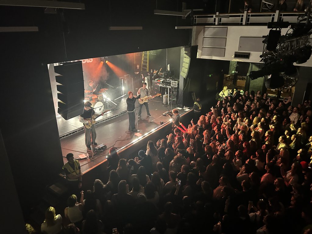 Roo brought SEREN to the stage next, a vocalist who reminded me a lot of Olivia Dean’s recent performances. Listening to her studio releases online, SEREN’s work is usually a lot more stripped back- piano, acoustic guitar- but she didn’t seem out of place at all centrestage with the whole band behind her. Her song River was particularly poignant, a vulnerable reflection on how it feels to move away from your hometown- ‘left a quiet life for a city I don’t know’. Besides her incredible vocal performance, it was this songwriting that had a beautiful vulnerability, authenticity, the sort of shared experience that left the young people in the crowd, like me, hanging on for the next word because we could relate so well. This was most noticeable on the band’s closing track, Maybe, I Don’t Know, with members of the band sporting t-shirts with the song’s lyrics- a strong conclusion that no doubt would have left a good last impression for the voters in the audience.