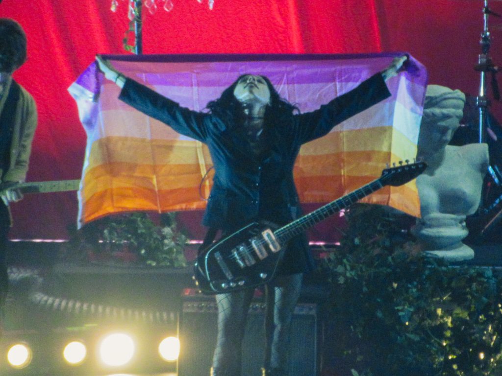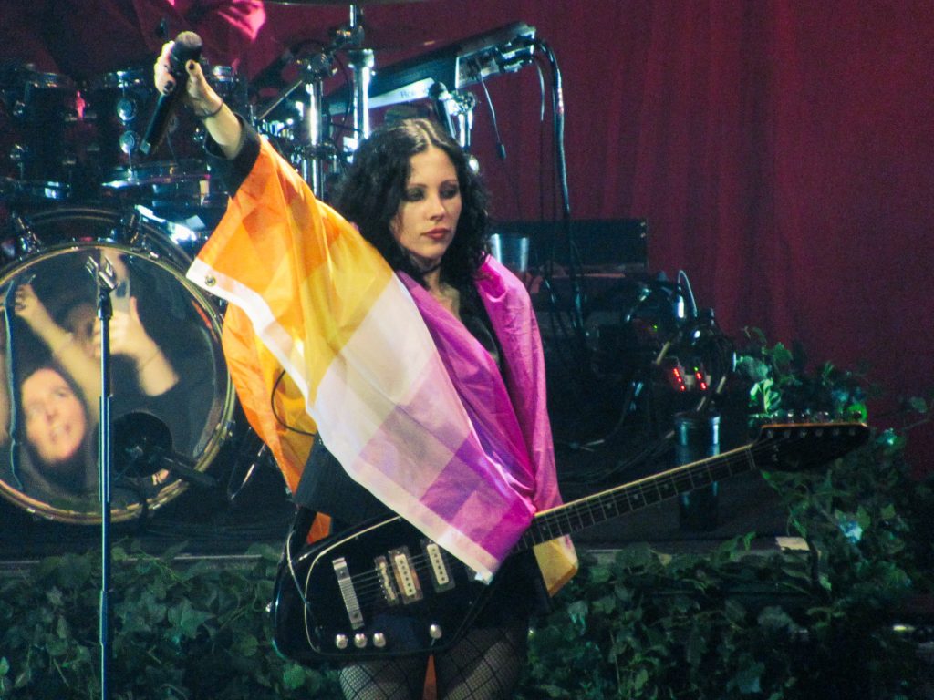 The band’s onstage control was masterful, and when they revisited Television Romance, the crowd erupted once again. Baron Gracie then embraced her queerness and delivered an overtly powerful performance of She’s My Religion; the track explores her personal journey and identity through the touching, reflective lyricism. One of the standout moments came when Baron-Gracie wrapped herself in the lesbian flag whilst singing, deepening the personal connection within the crowd once more. After such a heartfelt performance, the band briefly left the stage, leaving fans chanting and clapping for the inevitable encore.
