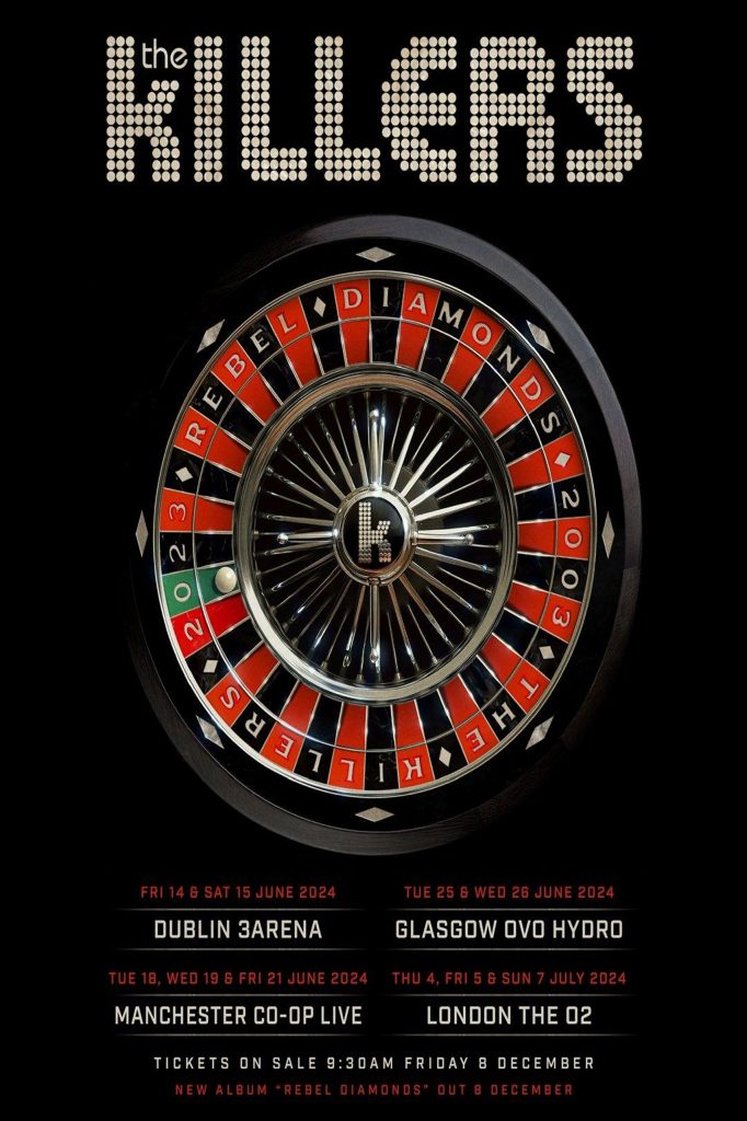 Ahead of the release of their brand new compilation album, Rebel Diamonds, on 8th December, The Killers are thrilled to announce details of a celebratory UK/Ireland tour in summer 2024. The Rebel Diamonds Tour will celebrate the band’s 20 years of hits in a series of arena shows, including multiple nights at London’s The O2.