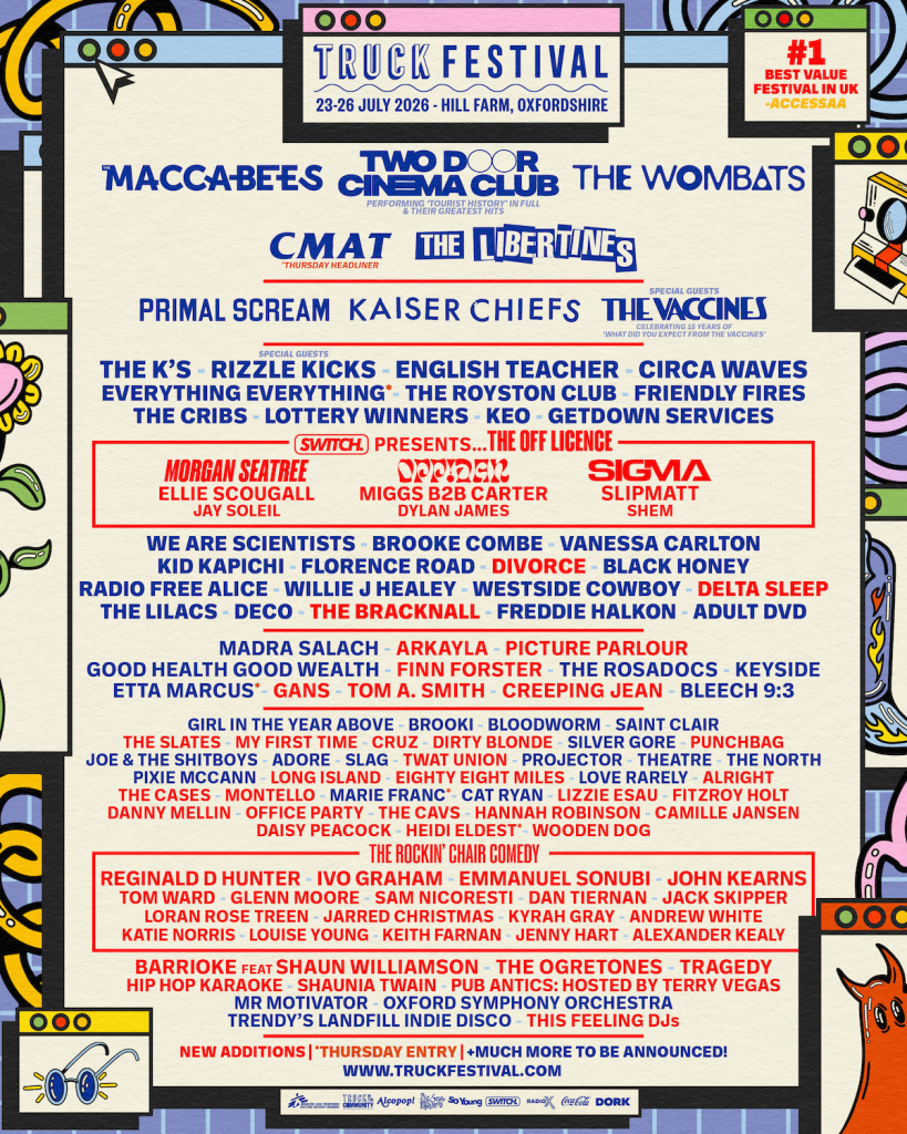 Often described as “your favourite artists’ favourite festival,” Truck Festival has built a reputation for its uniquely welcoming atmosphere, combining major live performances with comedy, late-night antics and a strong sense of community. The 2026 edition promises another weekend of standout sets, laugh-out-loud moments and lasting memories.