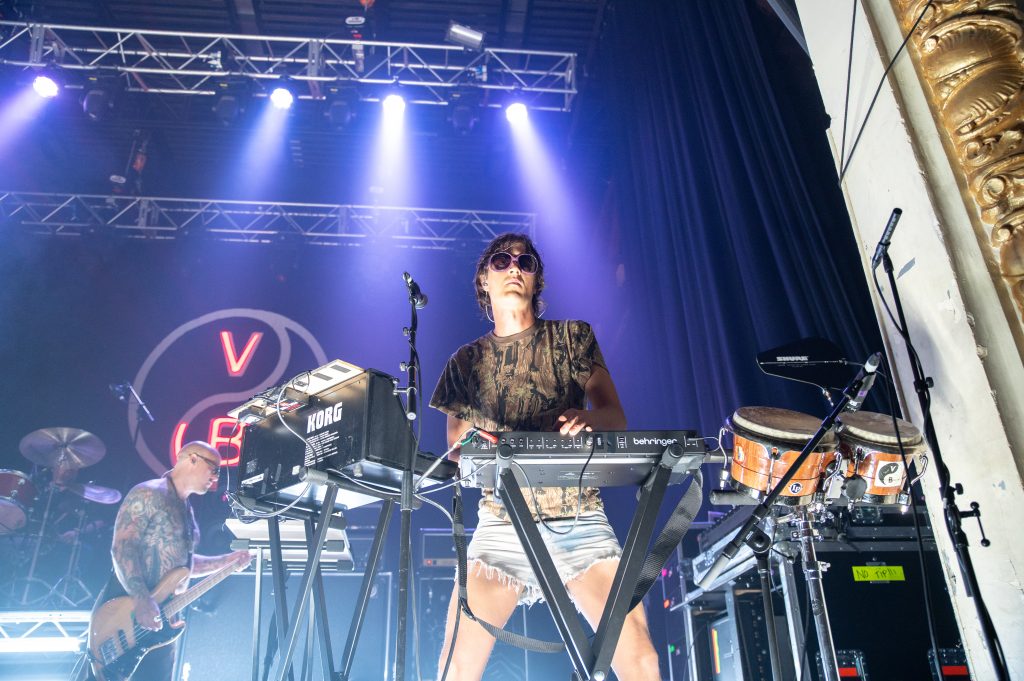 Before Viagra Boys even stepped on stage, the atmosphere inside Bournemouth’s O2 Academy was already electric. Opening the night were Boko Yout, a Swedish act blending Afro grunge with sheer theatrical brilliance. Dressed as if they’d stepped straight out of The Wild Thornberrys (iykyk), they had the crowd instantly on board. Their high octane set was full of surprises – from multiple band members diving into the crowd whilst still playing their instruments, to a fake medical emergency mid-song where the guitarist collapsed dramatically over a speaker, only for frontman Paul Adamah to smirk into the mic with a “gotcha” when the song ended. It was weird, wild and the perfect energy boost ahead of what was to come.