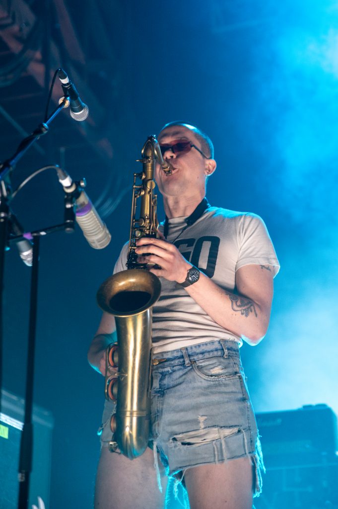 All the production crew were dressed in branded, Adidas-esque monochrome tracksuits featuring the VB yin-yang logo. A look that added to the immersive experience and created a sense of Viagra Boys cult following/world domination. If you were willing to part with £160, you could buy one at the merch stand and fully look the part yourself. A uniform of mayhem.