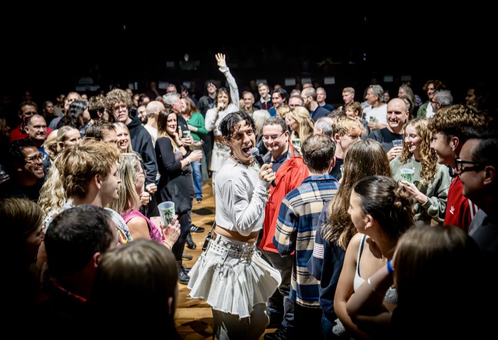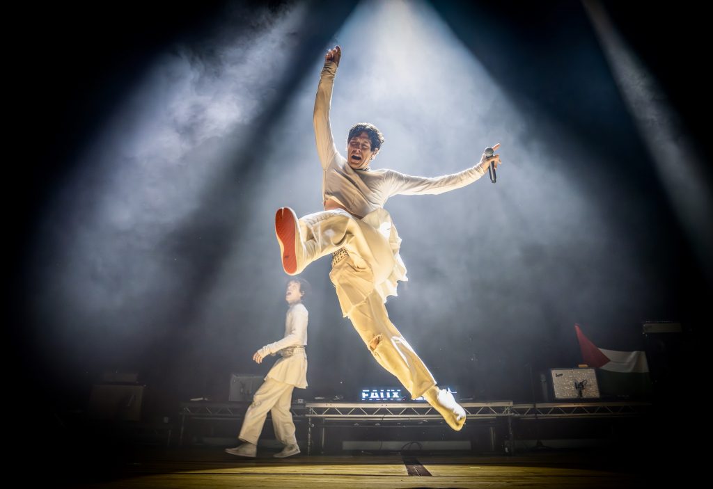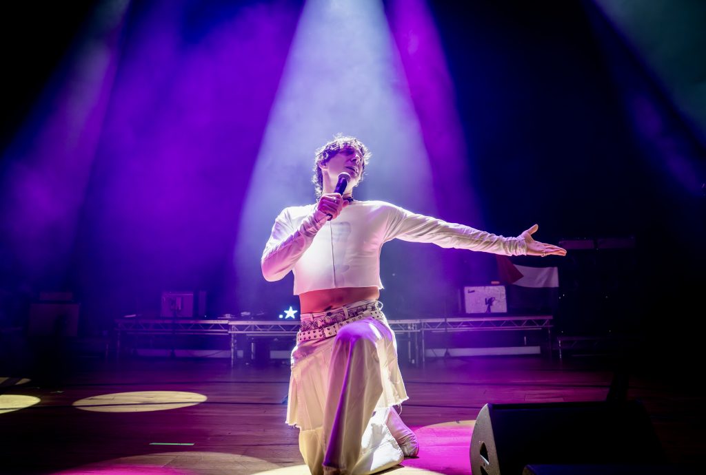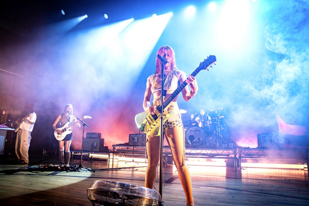 Despite the truly horrendous weather hammering Bristol all evening, the sold-out crowd at Bristol Beacon packed the venue to the rafters for Wet Leg’s return to the city. Any damp spirits were immediately lifted by support act Faux Real, whose playful, off-kilter performance brought exactly the kind of eccentric energy a night like this thrives on. Their choreographed art-pop set was clever, funny and unexpectedly tight – the ideal warm-up for what was to come.